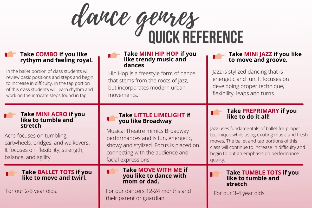 Class Attire: Form fitting clothes- Leotard or short-tard with or without form fitted shorts is suggested, jazz shoes. Hair pulled back off of face.